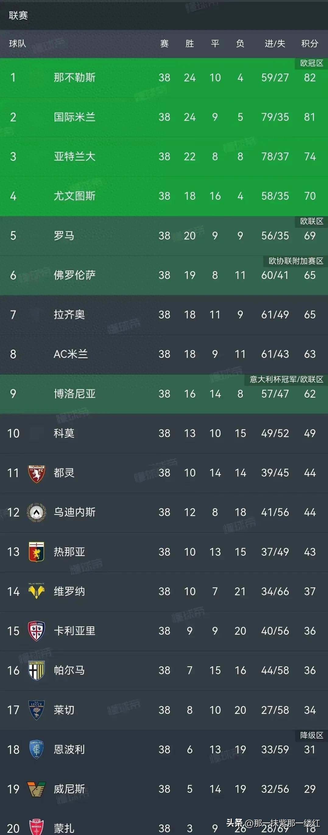 终于,随着最后的哨声响起,积分榜也定格在这一刻。尤文图斯惊险捍卫了自己的欧冠席位,罗马则获得了欧联的资格,赛季初濒临降级的他们竟完成了华丽转身;佛罗伦萨的逆袭成功带来了希望,而拉齐奥则在意外中黯然退场。降级的悲剧仿佛如梦初醒,意甲的新赛季格局在这一轮荡气回肠的交锋中重塑。